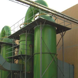 玻璃鋼脫硫設(shè)備工流程:首先,熱煙氣進(jìn)入預(yù)洗滌塔,與飽和硫酸銨溶液接觸,煙氣在此過程中被冷卻,同時(shí),由于飽和硫酸銨溶液中水的蒸發(fā)而析出硫酸銨晶體。已被冷卻的煙氣通過除霧器進(jìn)入SO2吸收塔。在吸收塔中,氨與水混合成氨液。煙氣中的SO2在此被吸收,與氨反應(yīng)生成硫酸銨。最后,脫硫后煙氣經(jīng)120米高的煙囪排入大氣。硫酸銨溶液被送入預(yù)洗滌塔循環(huán)利用。預(yù)洗滌塔中的硫酸銨料漿進(jìn)入脫水系統(tǒng)。先經(jīng)水利旋流器脫水,然后經(jīng)離心機(jī)得到硫酸銨濾餅。從旋流器和離心機(jī)回收的清液返回預(yù)洗滌器,循環(huán)利用。硫酸銨濾餅被送至造粒系統(tǒng),得到高利用價(jià)值的顆粒硫酸銨肥料,在被火車或者卡車運(yùn)走前,存放在能容納50,000噸硫酸銨的圓頂儲(chǔ)倉內(nèi)。
