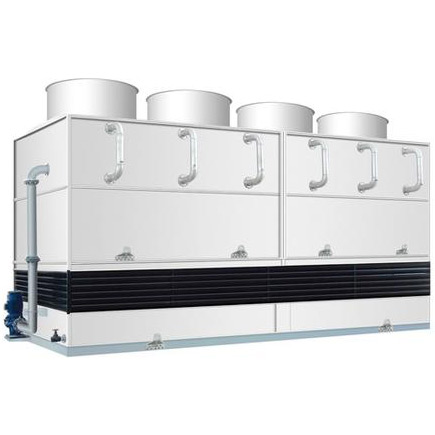 逆流式蒸發冷:是一種只利用水的潛熱換熱的蒸發冷,具有換熱面積大,不易產生冰堵和臟堵,能在各種環境下運行,特別是北方地區,效果最好,冬季無水干運行效果較好。進風形式為底部逆流進風,與下部的噴淋水逆向交替形成飽和濕熱空氣,熱量從頂部風機排出,水分有特殊結構的脫水器收回集水槽循環使用,內部空間沒有換熱填料,騰出更多的空間增加盤管的單位散熱面積。結構更加緊湊、占地小。特別適合與出水溫度要求接近當地濕球溫度的情況。