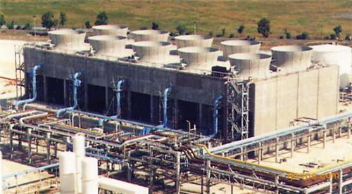 3、GFN無填料噴霧冷卻塔是通過霧化裝置將水噴成霧狀,使空氣和水的微小粒狀均勻接觸,而填料塔是通過布水噴頭將水分布在填料上以膜狀與冷風接觸。